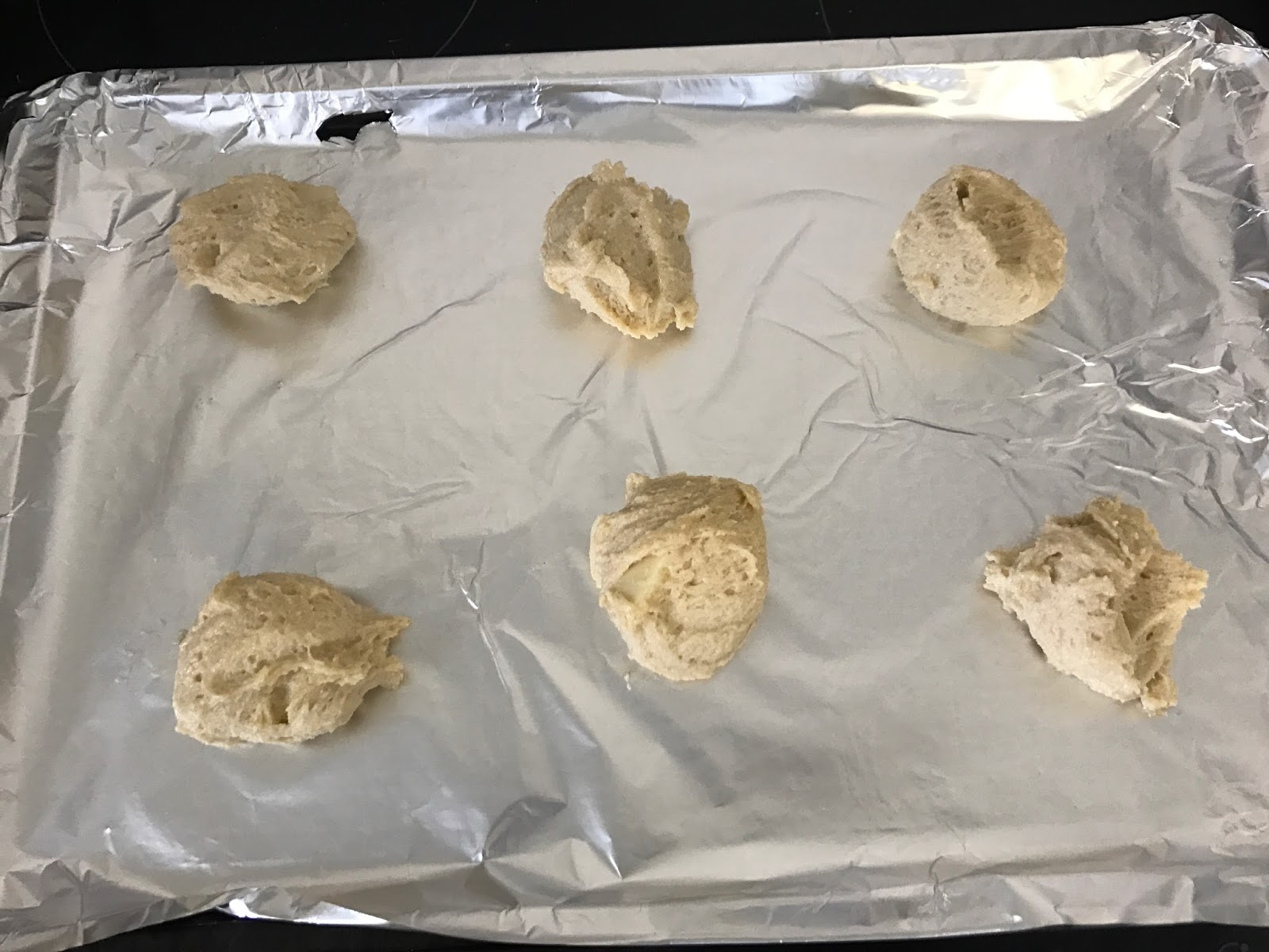 - Using 2 spoons form small lumps of mixture and pop them onto the baking tray
